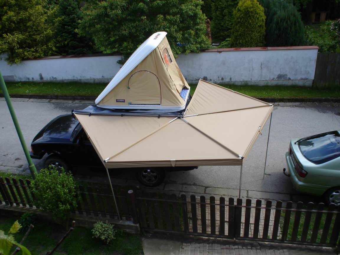 Máme na D2 markýzu 2x2m a je to takové rozumné minimum, nicméně se v dešti osvědčilo. Pokud bych chtěl větší, tak spíš vezmu jenom plachtu a tu přivážu, než další markýzu.