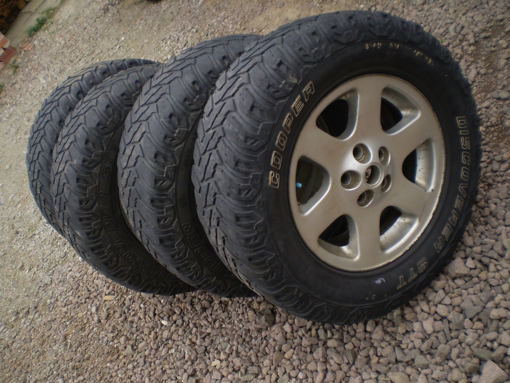 Predam 5 ks 18 disky na D2,RR P38,..+ 4x pneu Cooper discoverer STT 275/65 R18 a 1x Michelin zimna 255/55/R18(na rezerve). Hlbka dezenu cca 5-6mm. Na tu jednu sezonu ešte budu .Boli jazdene v terene takže nejake škrabance tam budu určite. Cena 250 Eur.Cena je za disky,gumy su k tomu gratis