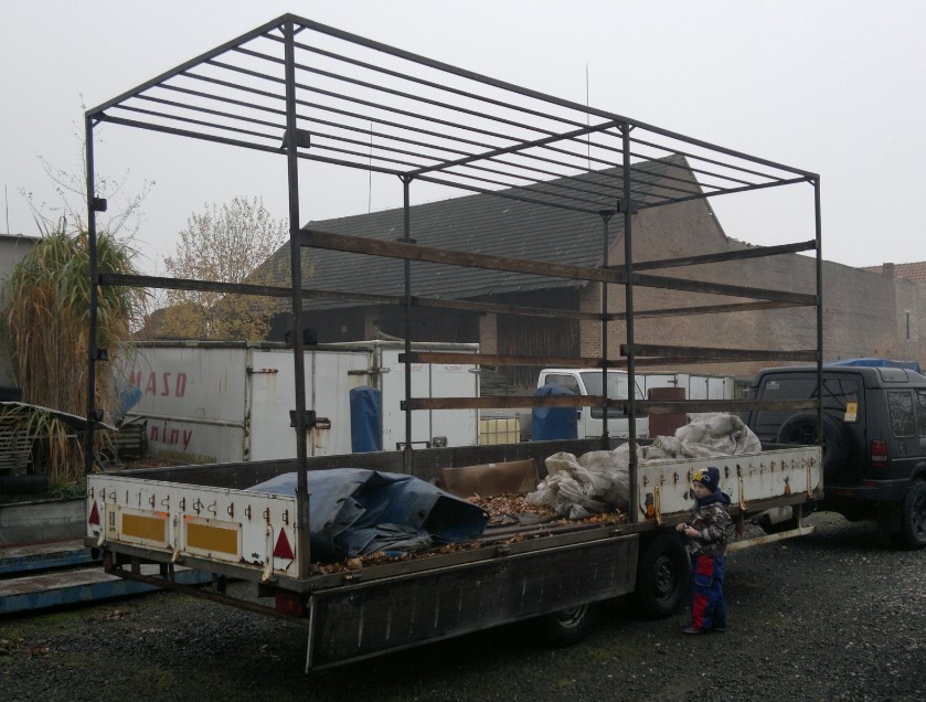 Plachta není,tu odnesl čas. 6xbočnice jdou sundat takže z něj jde udělat plato,podlaha pamatuje i lepší časy ale díry v ní nejsou,šasí je bytelne a v pořádku.brzdy nevím jak na tom jsou,původní majitel se dušoval ze brzdy jsou dělány včetně lan já to potahuju jen po dvorku protože se me to tam dost plete cena 16tis.