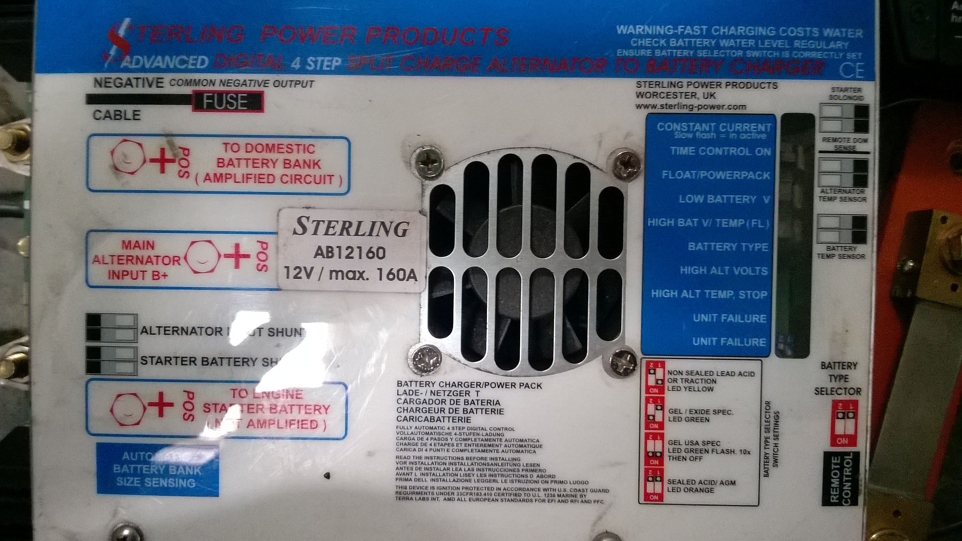 Dobíjecí systém od Sterling power product - Advanced digital 4 step split charge aleternator to battery charger
