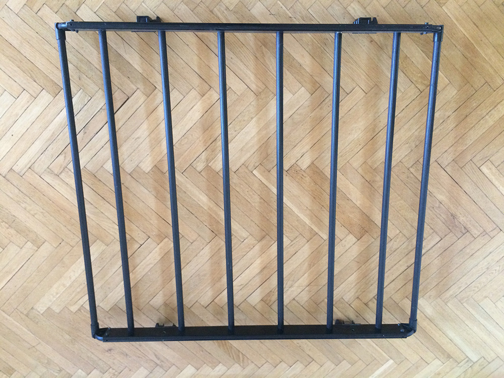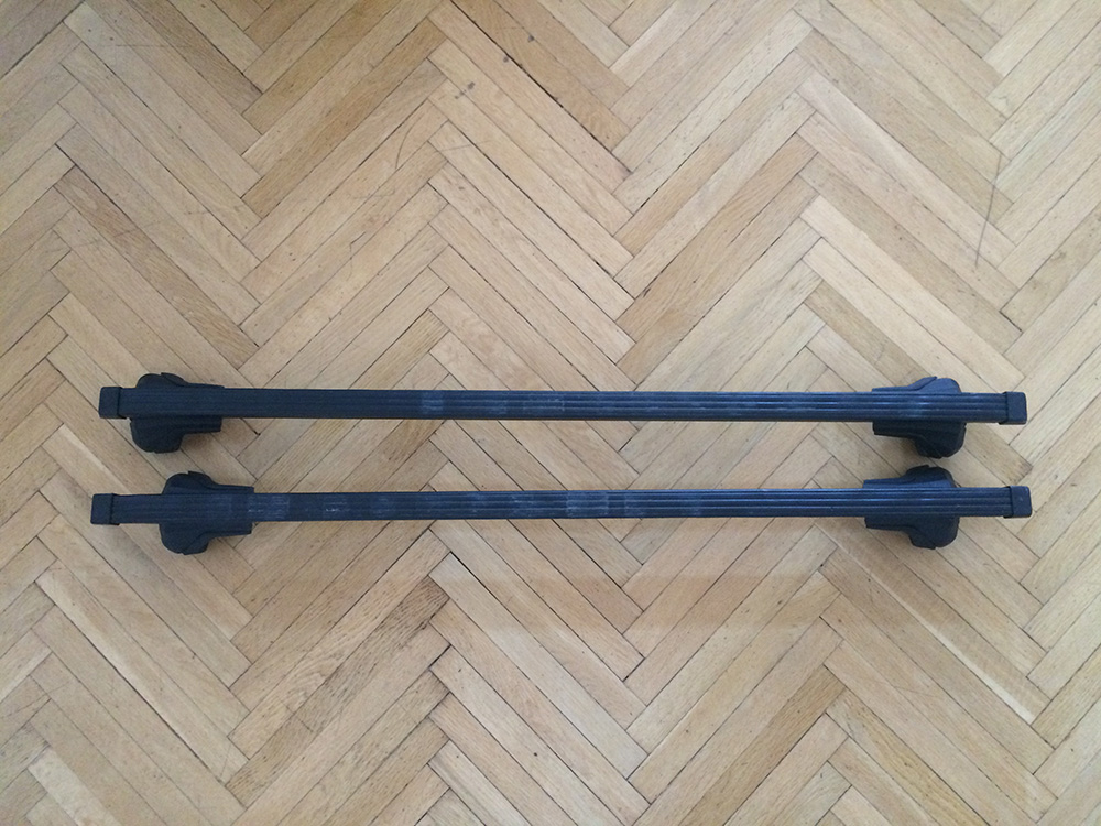 zůstala mi tady po freečku tahle zahrádka s příčníkama. Je to spíš taková zahrádečka 115 x 100 cm, kotví se to na hranaté příčníky, konkrétně na freečku vně hagusů, protože je to širší, tudíž příčníky musí být trošku delší, ideálně ty moje, protože se k tomu perfektně hodí. Je to z hliníku, v ruce trochu vachrlatý, ale jak se to připevní tak to těch 50 kg uveze ... muže to být buď rovný tzn., že náklad může přečuhovat, nebo se první a poslední příčka dá zvednout a udělá to takový koš. Na jedné straně to má dvě díry skrz bočnici, protože jsem k tomu měl přidělanou ještě markýzu. Na funkci to samo nemá vliv :)