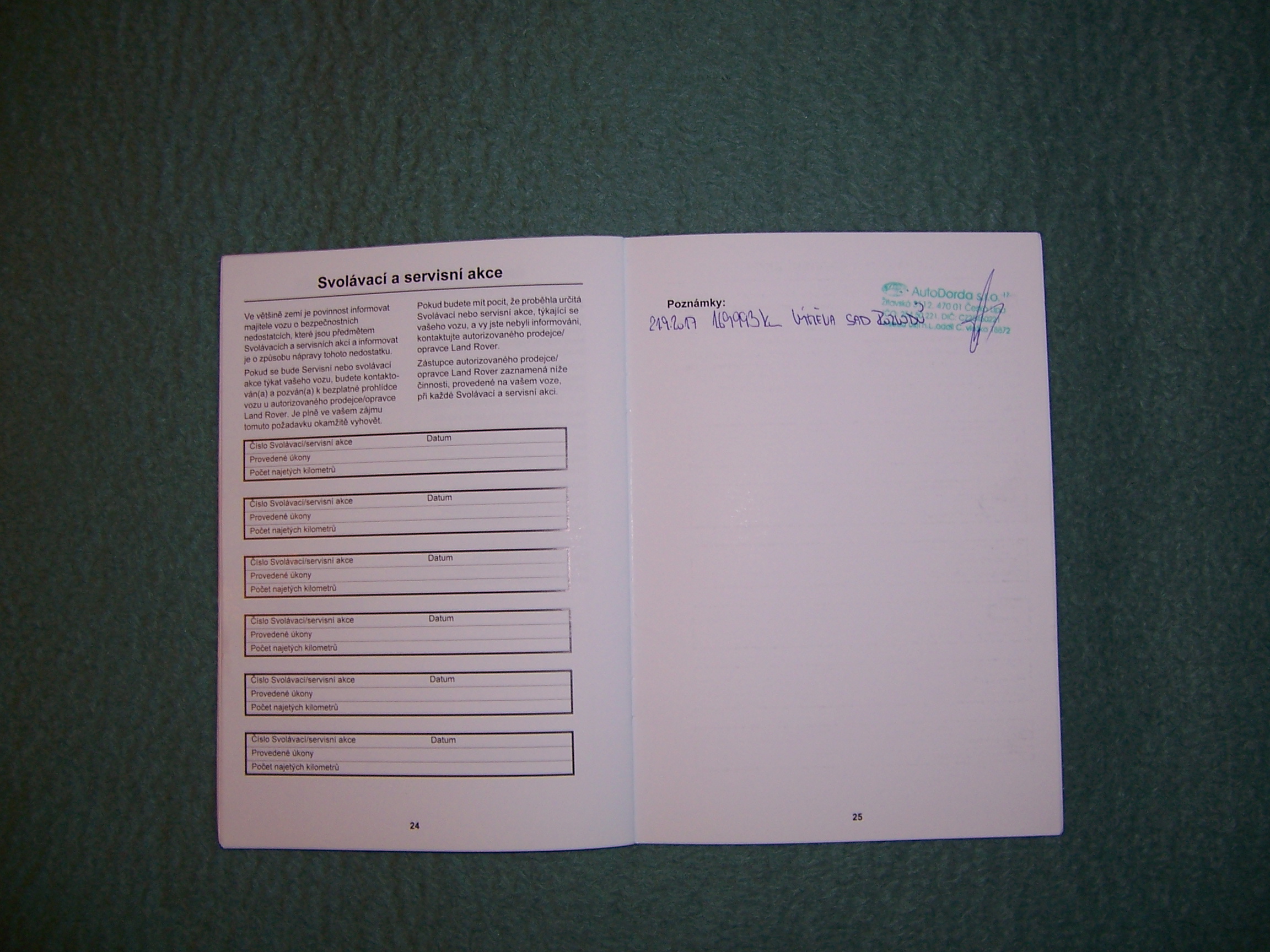 Český manuál, servisní knížka.