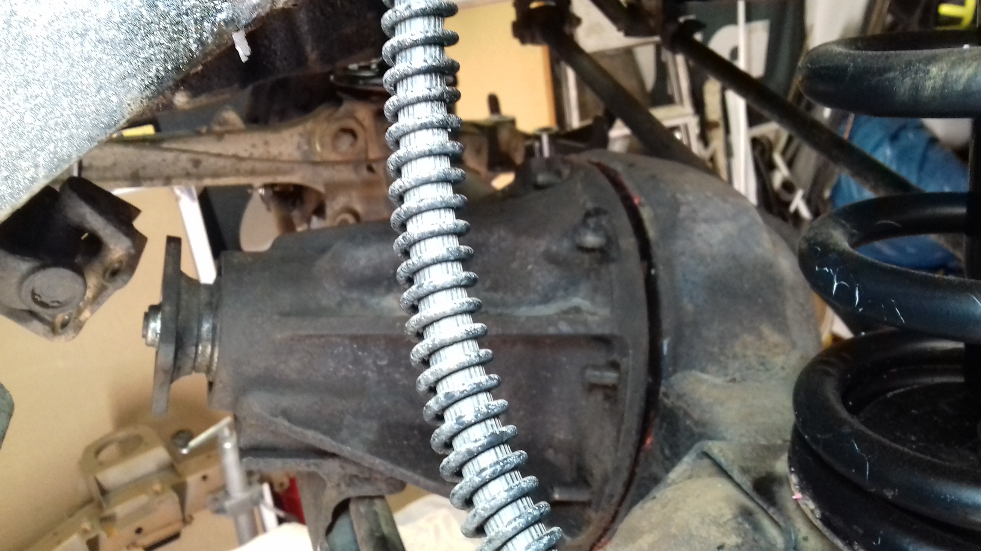 Hm, pěkně, ale to taky neklapne. Koš je v obalu uchycen dvěma klemama. K jejich šroubům je přístup jenom z předu difu. Nebo jedině potom na hard punk a upálit víko nápravy a mít to jako DANA naprava od Zjebu.
