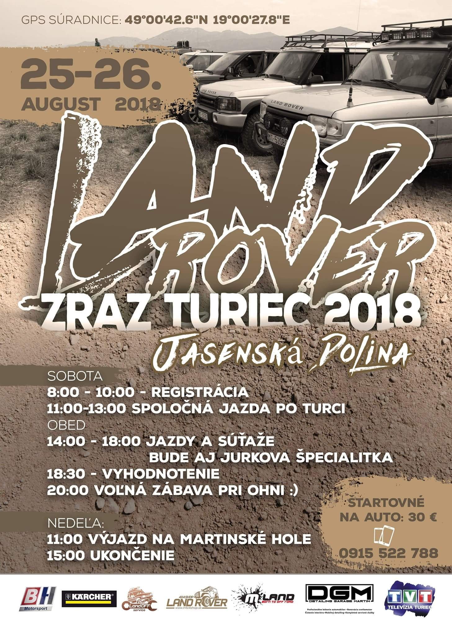 Oznamujem, ze dna 25-26.8 2018( sobota a nedela) v areali lyziarskeho strediska JASENSKA DOLINA sa uskutoční Land Rover ZRAZ Turiec 2018.