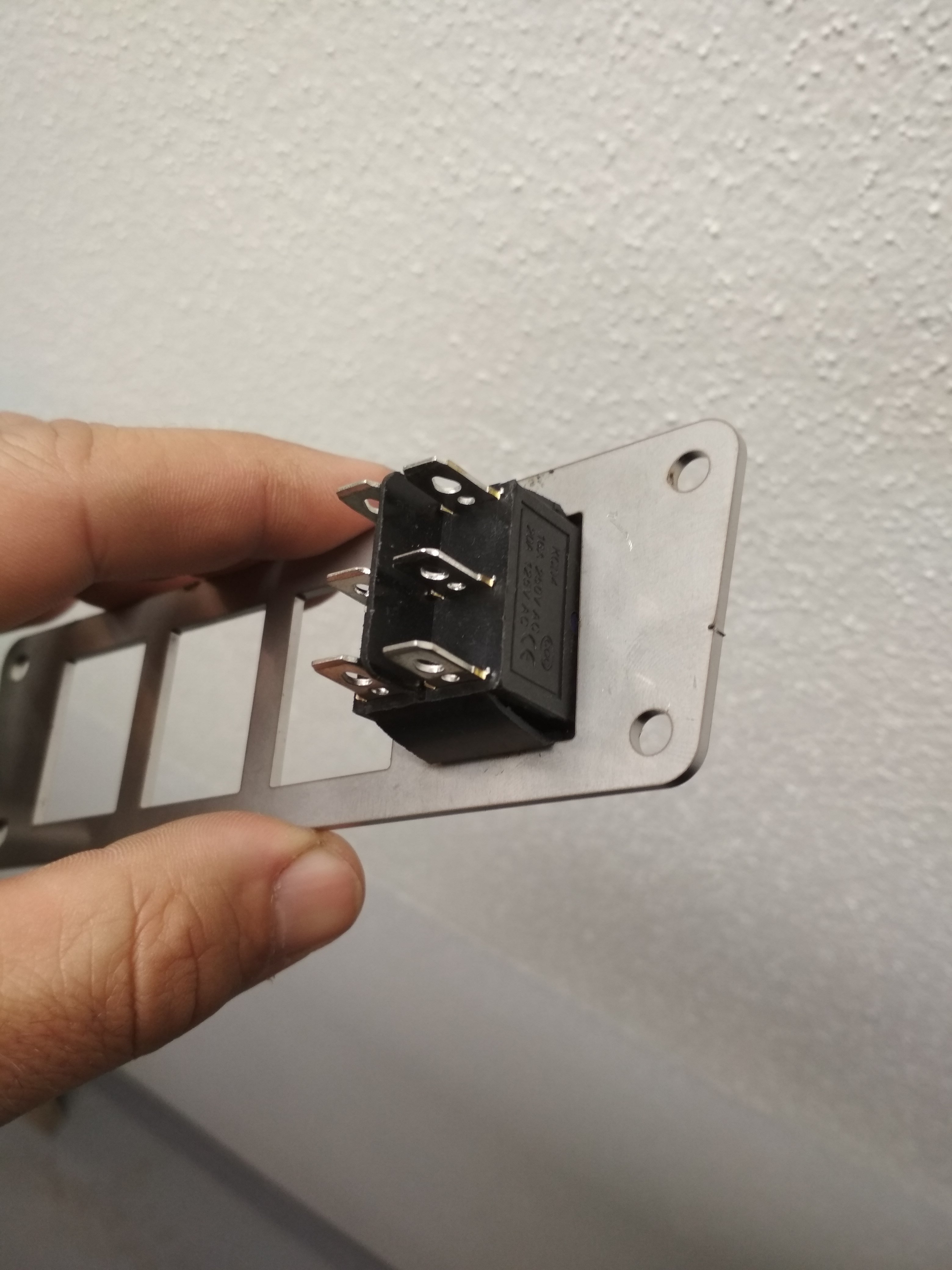 Predám tlačítkový panel pre 4 trojpolohové podsvietené vypínače - bežne dostupné. Pasujú samozrejme aj dvojpolohové. Panel je z 2mm nerezu. Mám dva kusy.