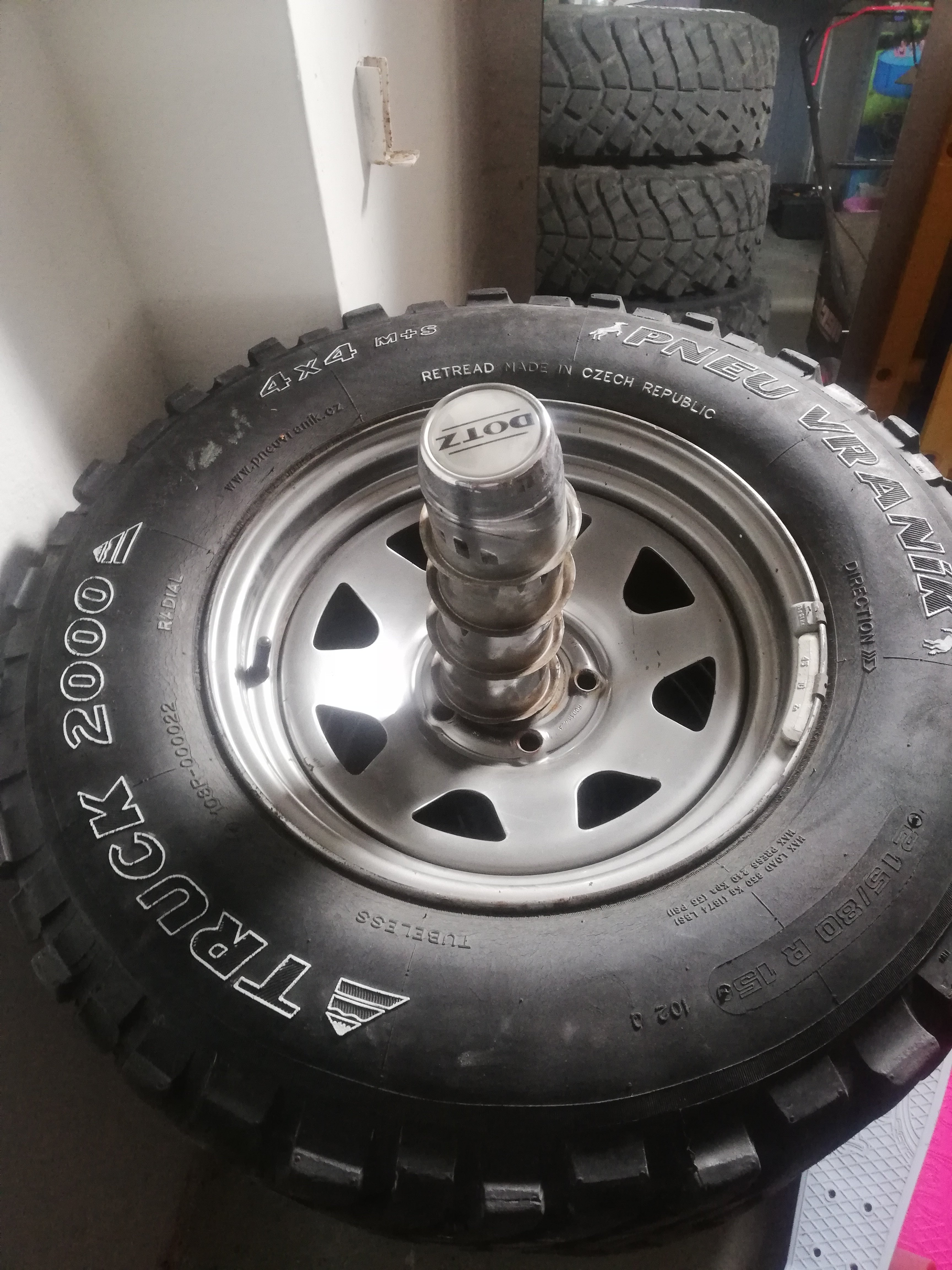 4x disk DOTZ + středové krytky + pneu Vranik Truck 2000 na dojetí.
