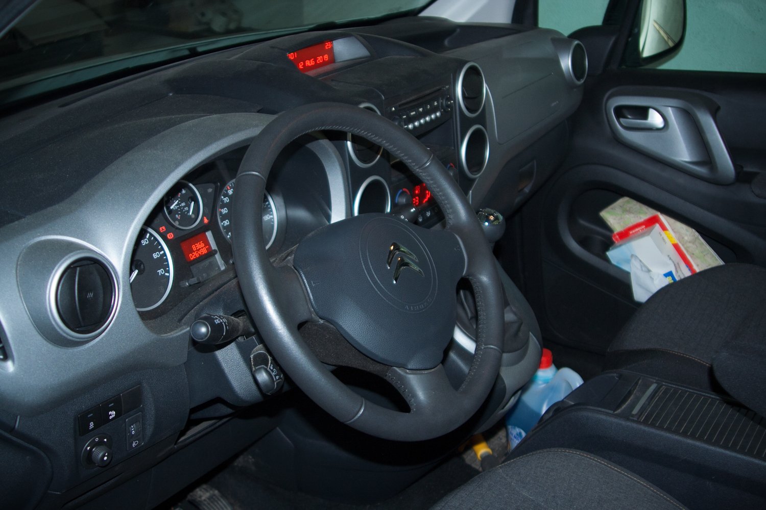 Je tam spousta nadstandardní výbavy, která byla částečně součástí verze XTR a částečně si táta auto nechal ještě dovybavit - 3 samostatná vyjímatelná sedadla ve druhé řadě, dvouzónová klimatizace, boční posuvné dveře na obou stranách, pomoc při rozjezdu do svahu, kožený volant, tempomat, zad. parkovací asistent, zvýšené odpružení a ochranný kryt, vyhřívaná přední sedadla, velký středový box, gumové podlážky, vše originál Citroën. Plus kompletní sada zimních kol.