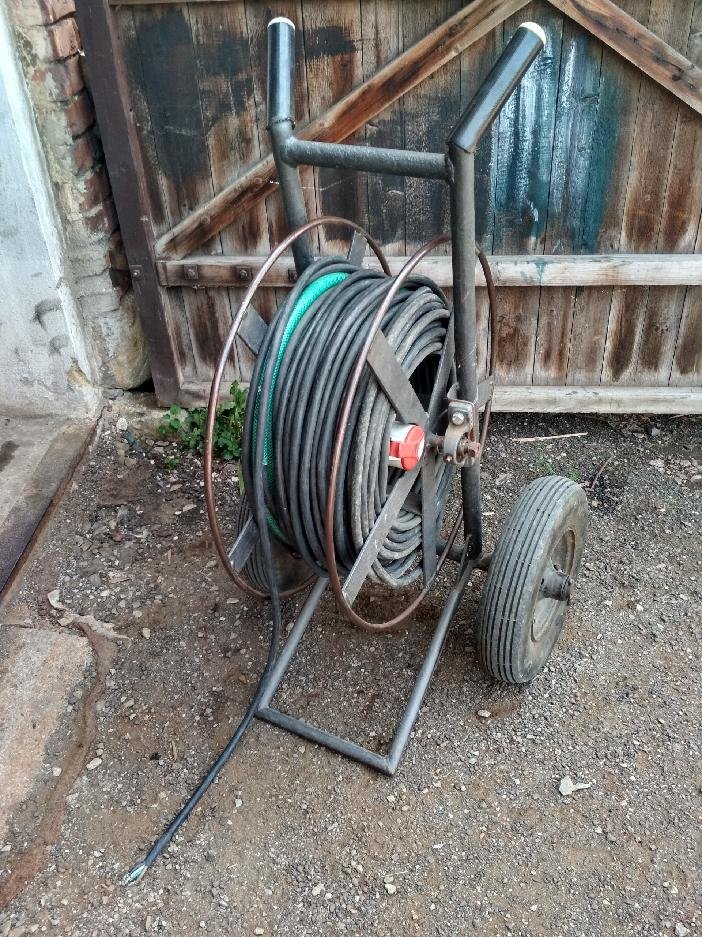 Prodám ohebný pryžový prodlužovací kabel 400V o délce 80 m s průřezem 4x 4 mm2, měděný, staří max. 8-10 let. Kabel je na cívce která je na ložiskách uložená na rudlíku. Kabelu je ve skutečnosti 85 m, ale na posledních 5 metrech je skřípnutý v jednom místě, nemělo vliv na funkčnost poslední 2 roky.