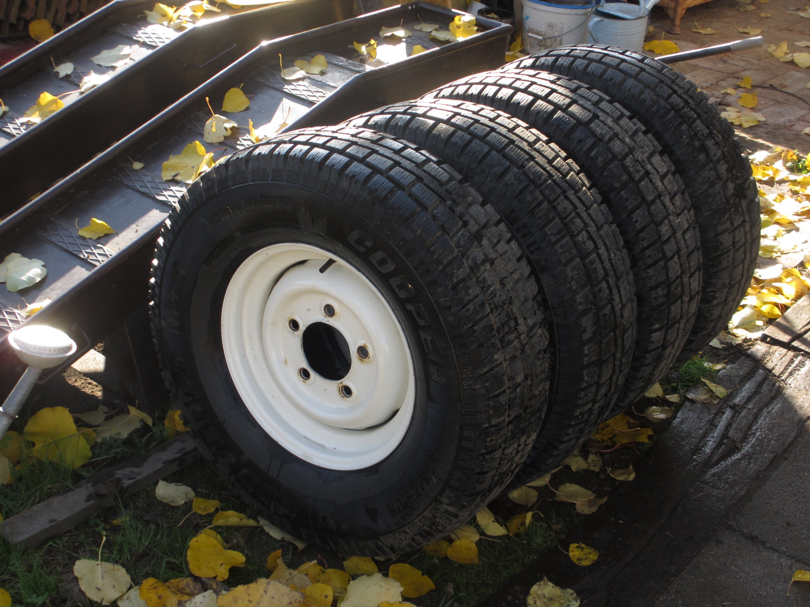 Ahoj,prodám 4 zimáky Cooper 265/75 R16. Hloubka vzorku 8,5-9mm disky z Defa ježděno na Disco1. Disky po renovaci ježděno dvě zimy a pak uskladněný.Pneu jsem koupil už jeté ale rovnoměrně opotřebené a bez defektu, je v nich vyvažovací prášek (vždy mě točí ty závažíčka,buď padaj nebo to tam rezne) Cena 9000,-