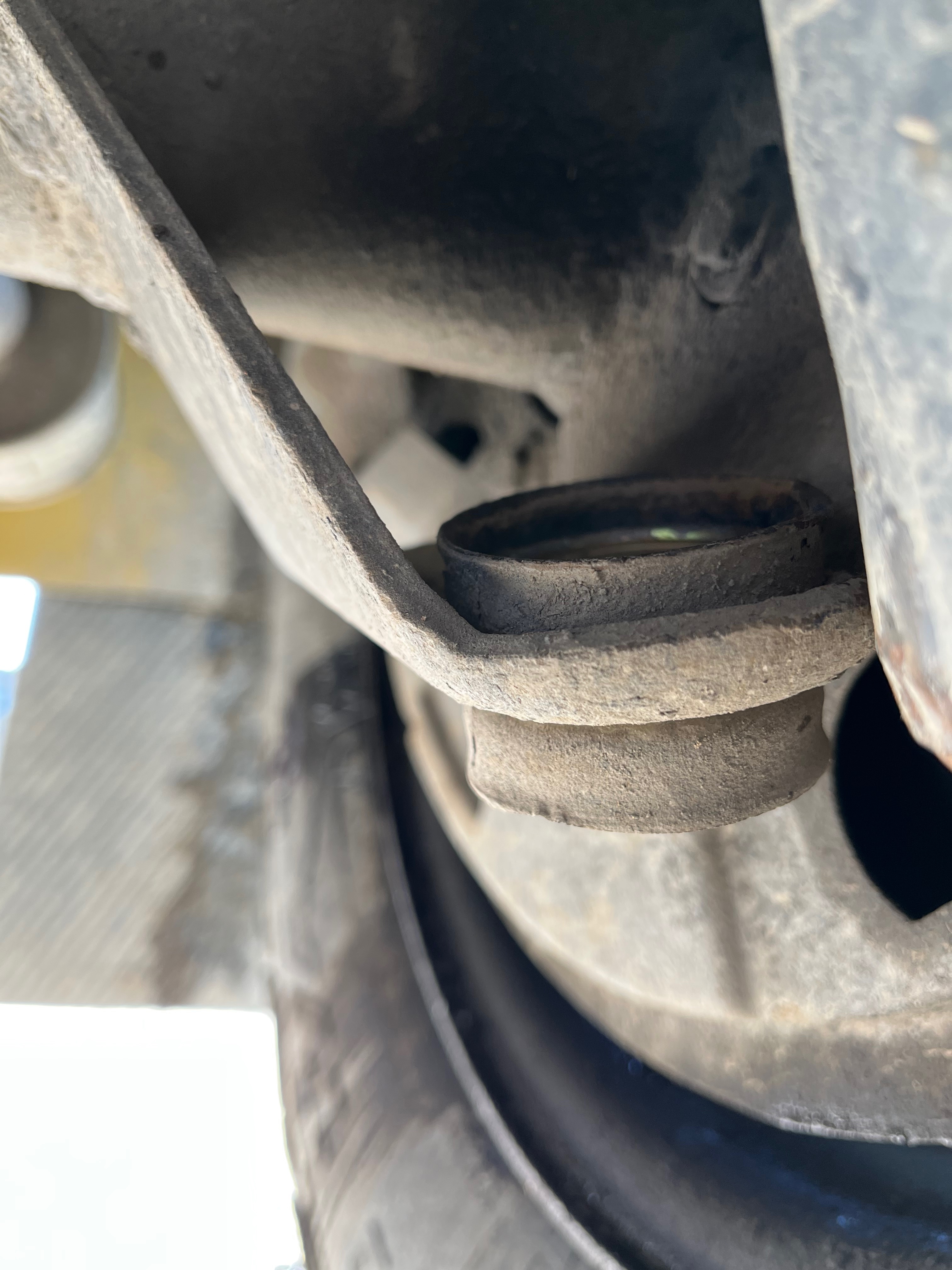 Nejsem si jistej, ale určitě tam u tohoto tlumiče měly zůstat ty misky přivařené k nápravě? A druhá věc - ty velké prohnuté podložky - neměly být náhodou opačně, tedy aby nestlačovaly kraje gumových silentbloků?