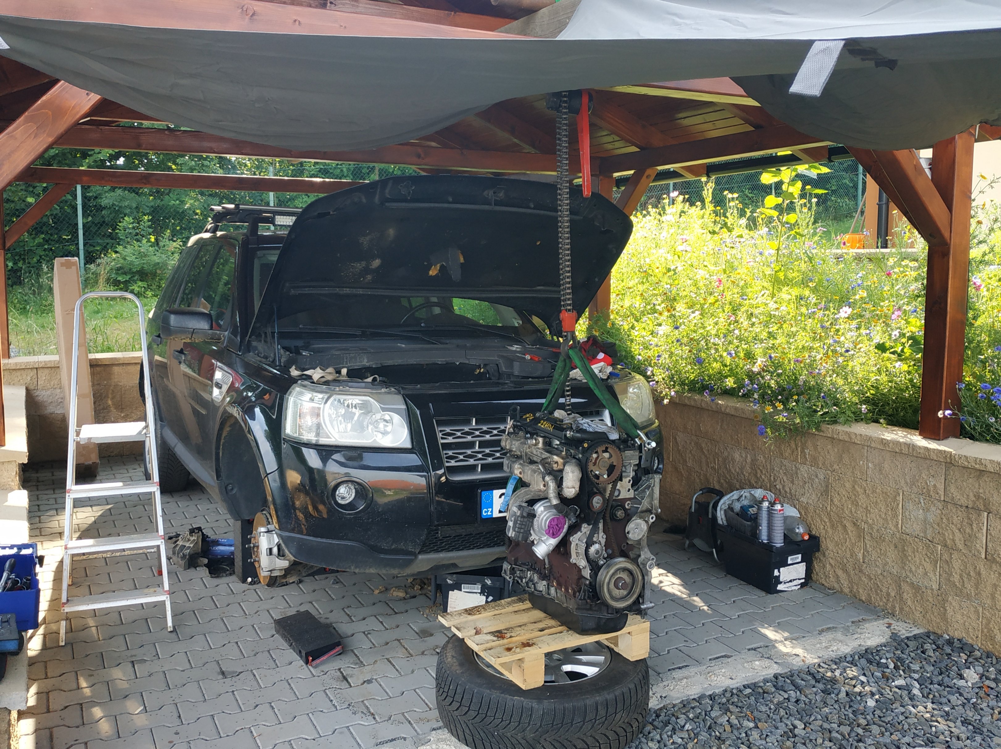O víkendu z toho vypustím olej a sundám vanu.
