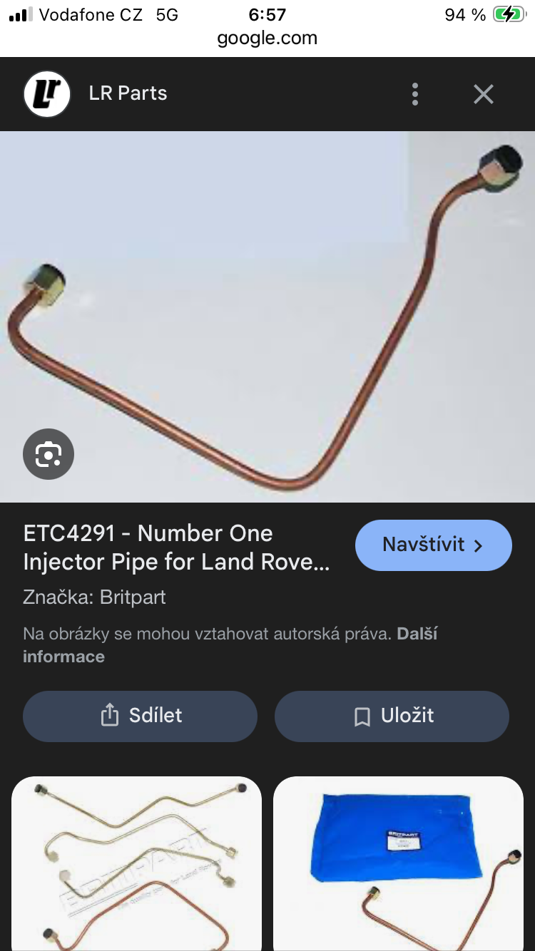 Sháním palivovou trubku ETC 4291 na Defendra, motor 2,5 td označeni 19J, na českých stránkách sem nic nenašel a z Anglie se mi to úplně nechce objednávat kvůli jedné položce.