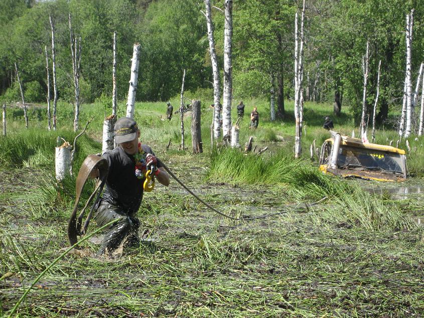 Tak se mi povedla taková taškařice, po školácké chybě kdy jsem vjel do kolejí sem to posadil na diferáky, ale díky heveru, vzduchovýmu vaku a cihlám z bouračky vysypanejm podle cesty se mi po dvou hodinách podařilo vlastníma silama dostat ven. Ještě že máme teplý jaro, protože ten potok co jsem se v něm pak koupal byl děsně ledovej
